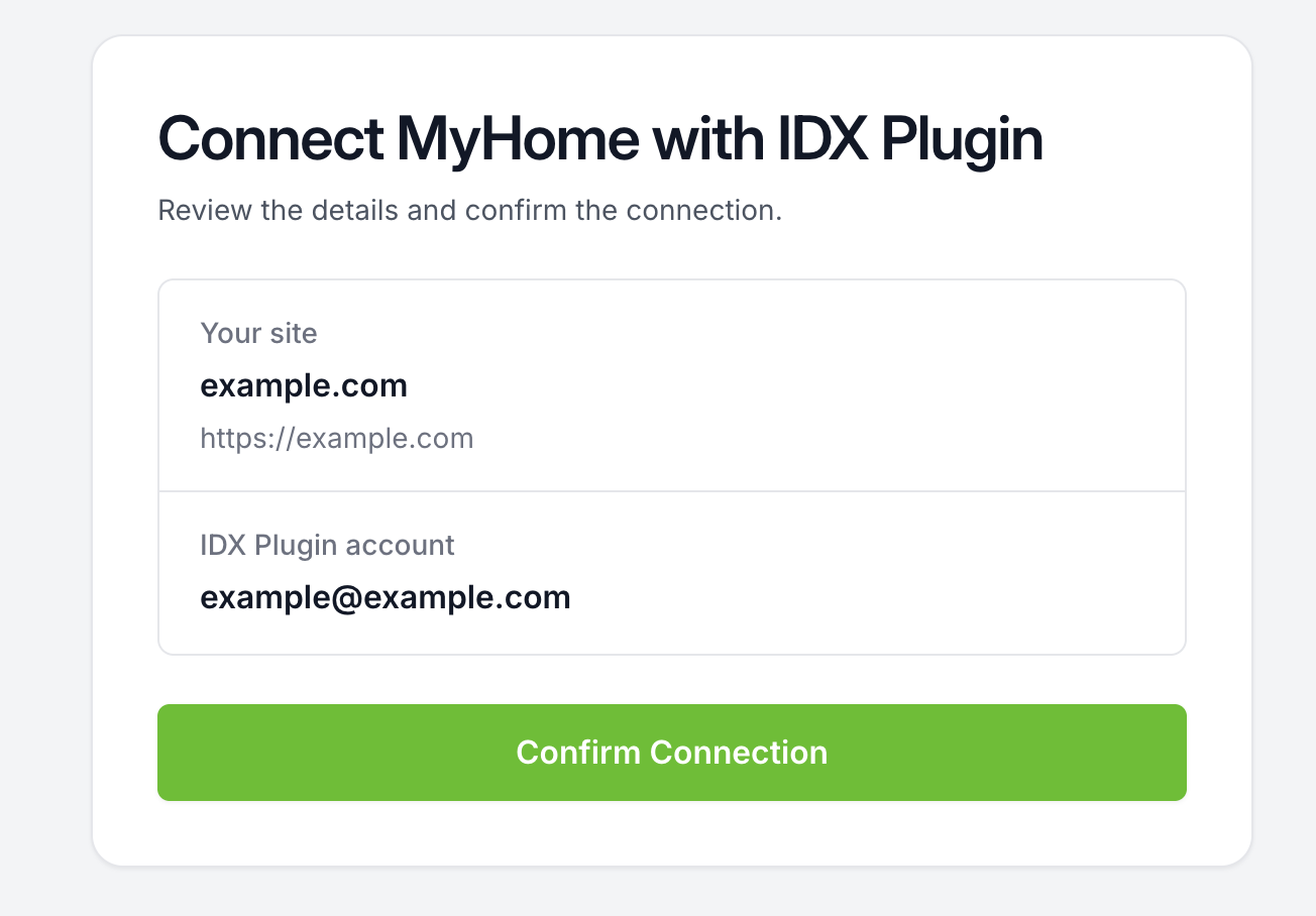 a) IDX Broker API key already added: You will see a confirmation screen. Click Confirm Connection.
