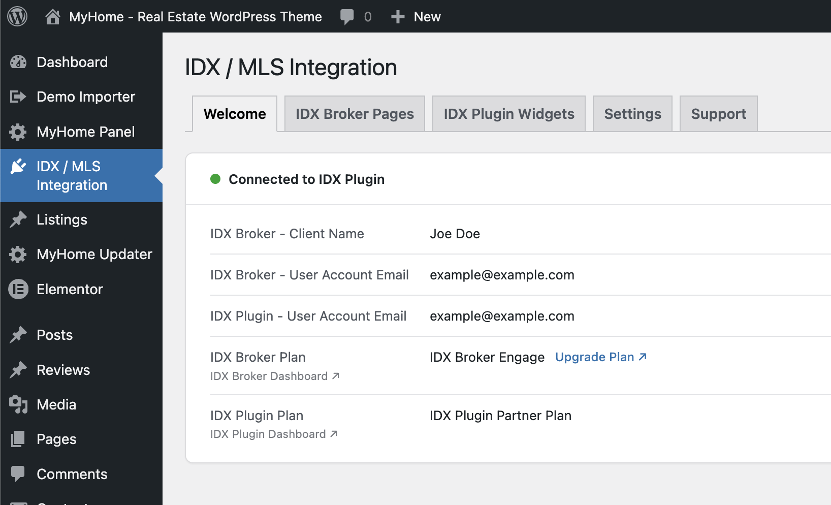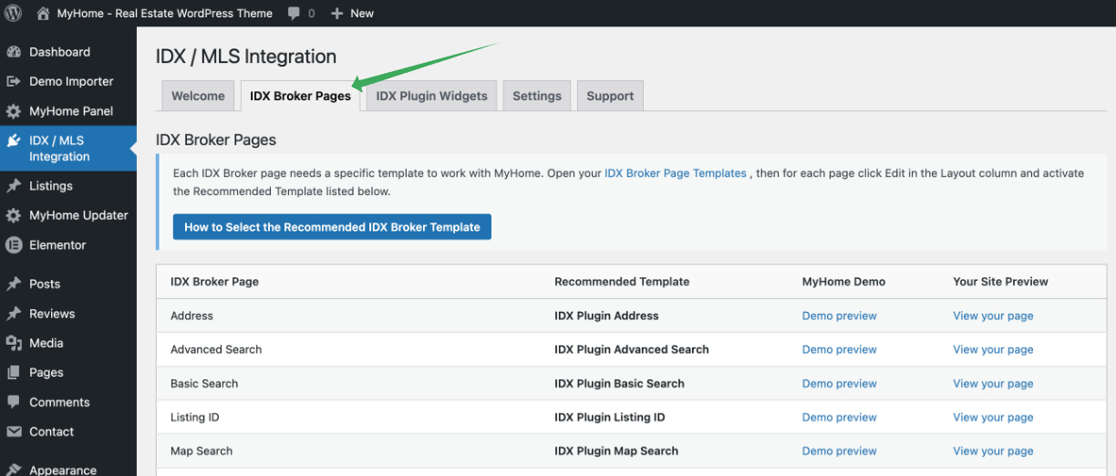 Connecting MyHome to IDX Plugin