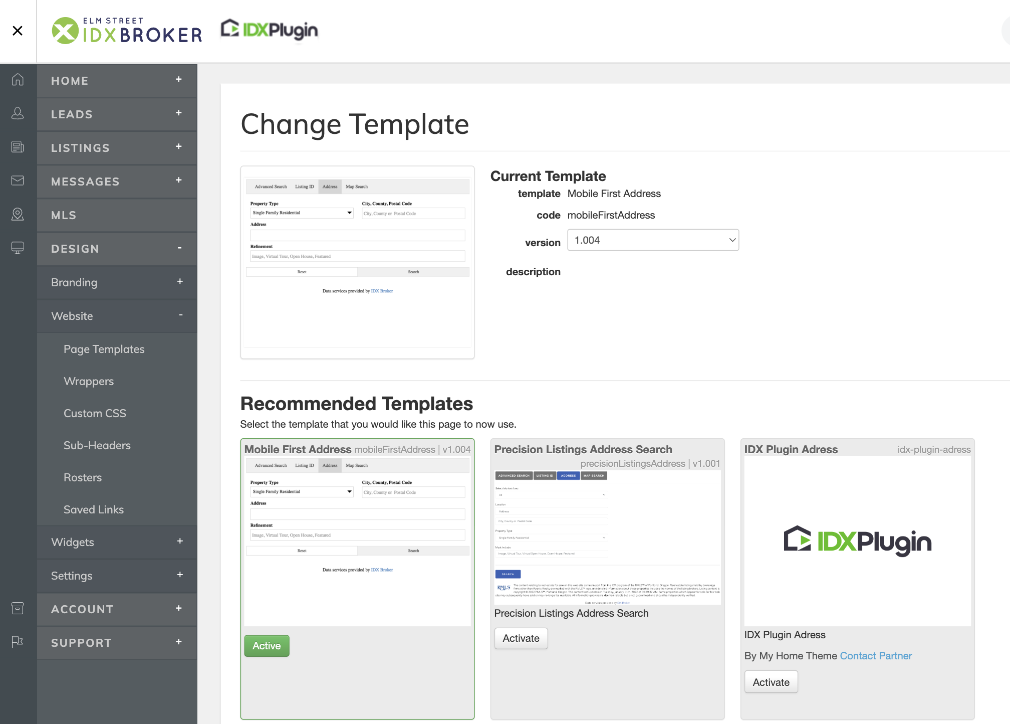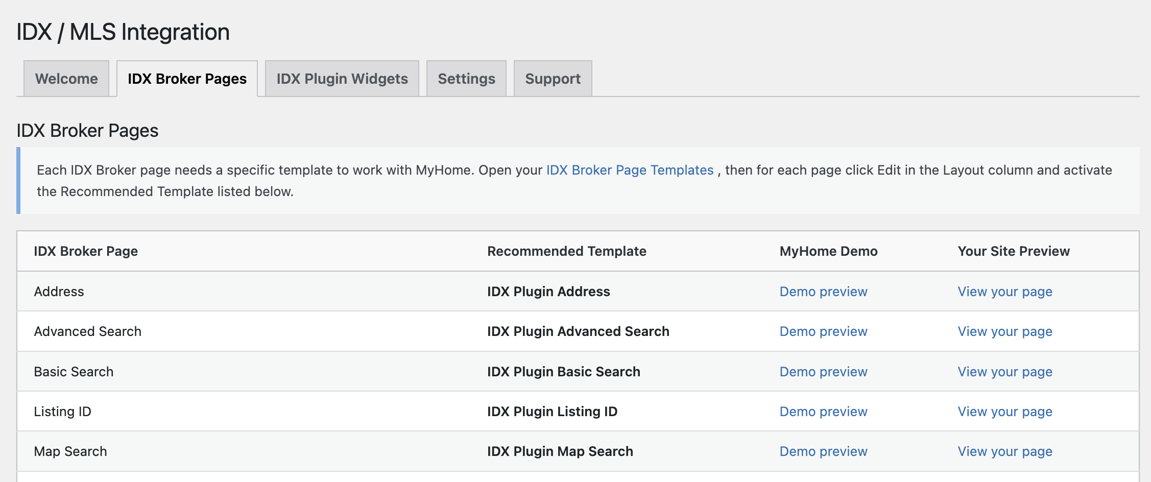 Each IDX Broker page needs a specific template to display correctly with MyHome. This guide walks you through activating the recommended template for every page.
